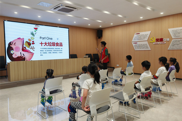 儿童食品安全课围绕《儿童共享食安》展开。社区工作人员借助生动的PPT,为孩子们详细介绍“十大垃圾食品”,像油炸食品、腌制食品、加工类肉食品等。在讲解过程中,志愿者以油炸食品为例,深入浅出地阐述其因高热量、高油脂和含致癌物质的问题,不仅容易导致肥胖,还会增加患心血管疾病的风险,在油炸过程中产生的致癌物质更是危害健康。话梅蜜饯类食品,则因含有亚硝酸盐和高盐分,可能损害肝脏,引发高血压。