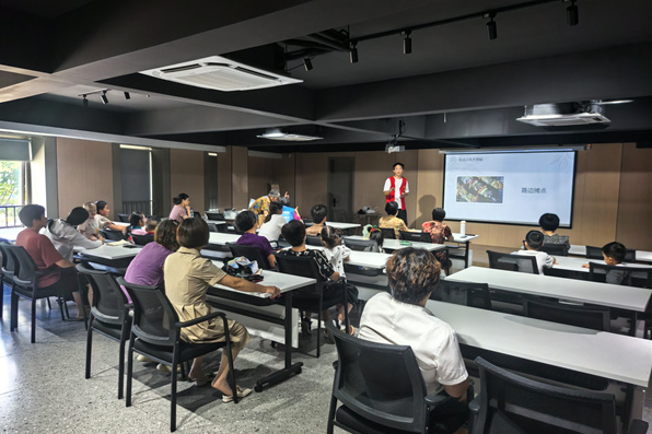 老年群体的课程以《老年人共享食安》为核心。社区工作人员先从食品安全基本概念讲起,强调食品应具备充足供应、质量安全、无污染等要素,并现场教学,指导老人如何识别绿色食品标志,选择有营业执照的正规商家。