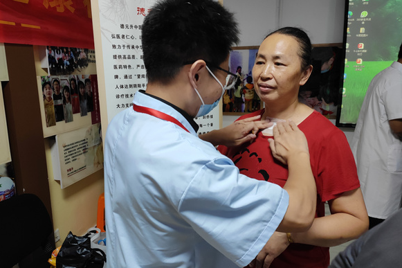 时值三伏天,“三伏贴” 作为中医 “冬病夏治” 的特色疗法备受居民关注。活动现场专门设置了三伏贴贴敷区域,医师们根据居民的身体状况辨证施贴,帮助大家通过冬病夏治的方式调理身体、增强免疫力。居民们排着队有序等待,贴敷完成后纷纷表示:“在家门口就能享受到专业的中医服务,真是太方便了!”