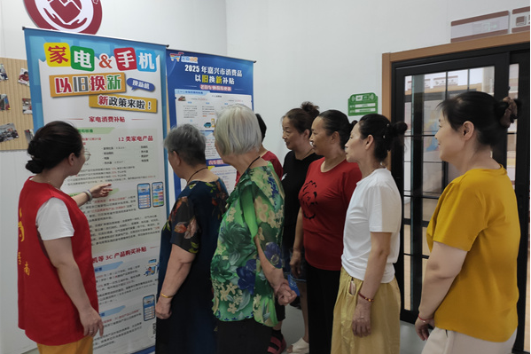 活动间隙,社区工作人员也化身 “政策宣传员”,忙碌地穿梭在居民中间。除了向大家发放 “孝老爱亲”“厚养薄葬” 等文明理念宣传手册,引导居民树立科学健康的生活观念外,还重点围绕家电、手机 “以旧换新” 新政策展开讲解。工作人员用具体案例向居民介绍:“家里旧冰箱、旧洗衣机只要符合条件,不仅能享受专业回收,还能凭回收凭证兑换最高几百元的换新补贴,买新手机也有专属优惠,既环保又省钱!”不少居民听完讲解后纷纷表示:“以前不知道以旧换新政策这么实惠,这下打算把家里的旧家电换了,既改善生活,又为环保出份力!”