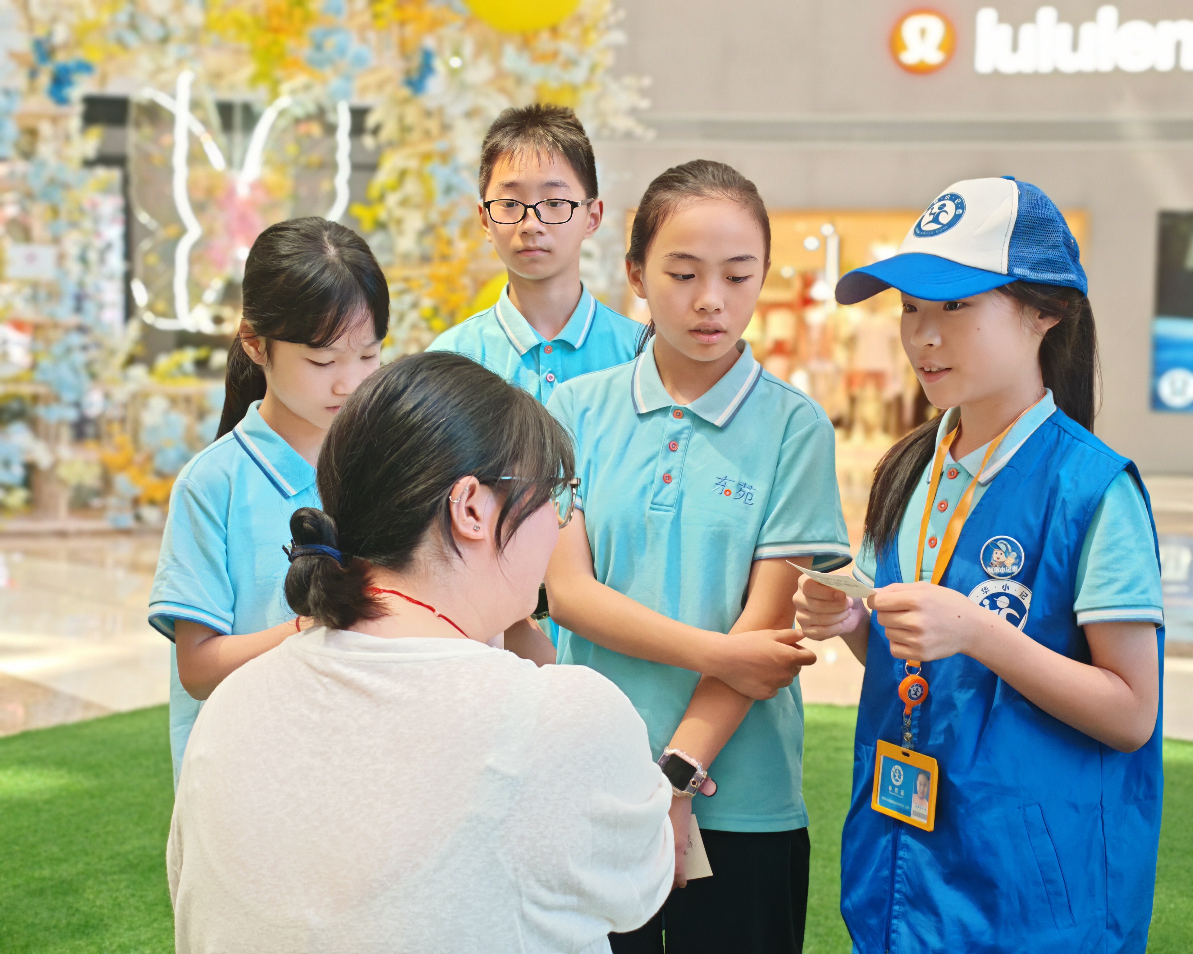 社区文化网(通讯员 施涵丽)在刚刚过去的周末,金华世贸时代广场人声鼎沸。不同于往常的购物喧闹,一群“AI科普小使者”正被好奇的市民层层围住。他们是来自金华市东苑小学2020级三班的学生,在这个暑假,他们化身“小小科普官”,以“稚手播智种·邀您共解码”为主题,用一场精心准备的AI知识宣讲综合实践活动,点燃了商场里的科技热情。