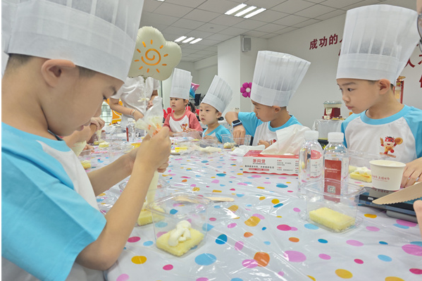 午后,活动聚焦身心健康成长。嘉兴分行特邀专业医疗团队为孩子们进行细致的口腔检查、视力筛查,并特别安排中医三伏贴体验,将传统中医“治未病”的智慧融入健康关怀。带着健康的祝福,孩子们转战“爱心烘焙坊”,亲手为父母制作甜蜜蛋糕。孩子们化身小小烘焙师,用奶油、水果等描绘创意,每一份蛋糕都凝聚着对父母的深深感恩,成为这个夏日最温暖的礼物。
