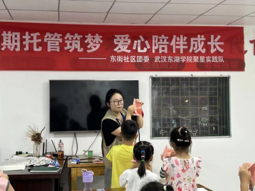 折纸艺术作为传统文化的瑰宝,始终是文化传承的重要载体。为激发青少年对手工艺术的热爱,进一步弘扬中华传统技艺,武汉东湖学院聚星实践队于2025年7月份暑期在嘉鱼县东街社区,首次开展"折纸艺术小课堂"主题活动。通过现场教学、互动体验等形式,向社区青少年传授折纸技艺,在寓教于乐中提升青少年的艺术创造力和文化传承意识。