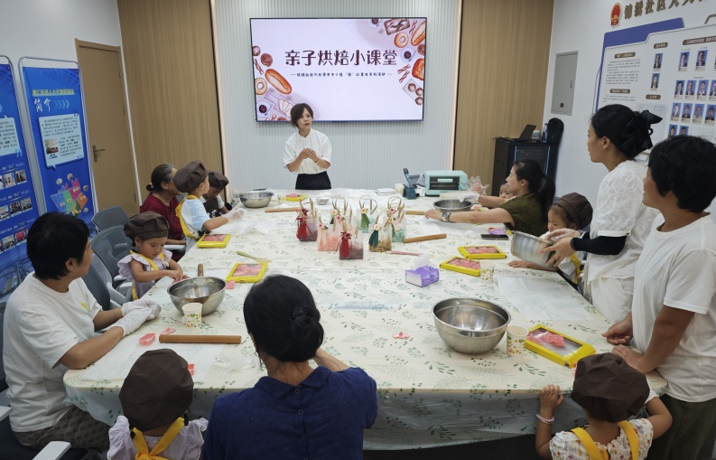 8月22日上午,嘉兴经开区塘汇街道锦绣未来社区活动室内飘出阵阵黄油香气,一场温馨的亲子烘焙活动正在这里热闹开展。社区人口家庭协会特邀专业烘焙师,组织辖区内6组2-3岁婴幼儿亲子家庭开展“锦”彩童年系列活动之亲子烘焙小课堂,让宝宝在动手实践中感受劳动乐趣,增进亲子情感。