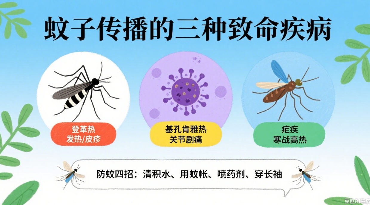 预防这三种疾病,最关键的就是防蚊灭蚊!根据最新防控指南,建议采取以下措施: