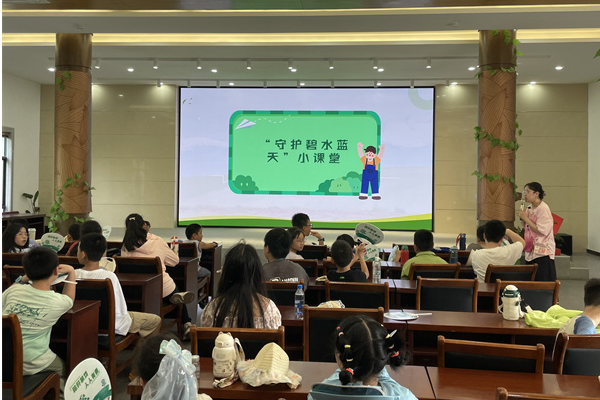 随后,孩子们来到胥山村文化礼堂,“守护碧水蓝天”理论通关战开始了,颜老师拿出了看家法宝——秸秆回收利用制作的盘子,“小河长”们开动脑筋,回答问题,纷纷获得了这件“宝物”。这场“好看、好玩”的生态课堂深化了孩子们的生态认知、内化环保理念。
