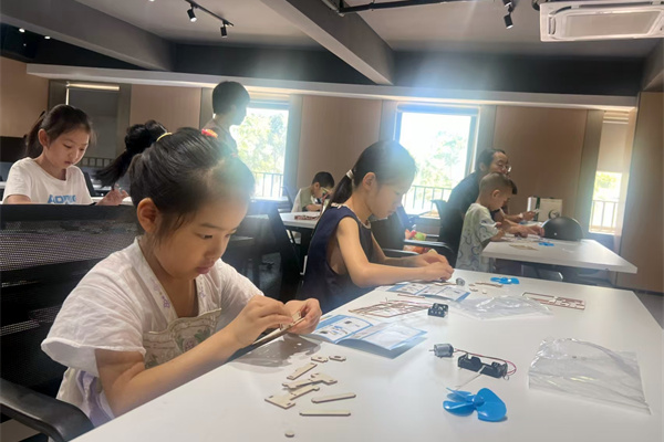 在老师和志愿者们的耐心指导下,孩子们开始一步步动手操作:连接电路、固定马达、安装扇叶、组装支架……这个过程并非一帆风顺,但都一一克服了。“我的风扇转起来啦!”顷刻间,活动室里响起此起彼伏的欢呼声。一个个小小的风扇相继成功运转,清凉的风从自己亲手制作的装置中吹出,孩子们的脸上洋溢着无比自豪和喜悦的笑容。通过亲身实践,深刻地理解了电能如何转化为机械能,从而带动扇叶旋转引起空气流动的全过程,完美呼应了此前绘本中学到的知识。