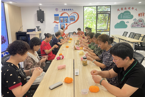 本次活动巧妙融合了古老七夕“乞巧、相聚、传情”的文化内核与现代手工艺的趣味。社区长者们欢聚一堂,在专业指导下,以色彩缤纷的绒线为媒,学习编织时下备受欢迎的“拉布布”萌趣玩偶。飞针走线间,不仅是对传统“乞巧”技艺的生动实践,更成为连接彼此情感的温暖纽带。现场气氛热烈而专注,大家互相交流技法,分享生活趣事,欢声笑语不断。一件件逐渐成形的可爱玩偶,不仅凝聚着长者的智慧与巧思,更承载着对美好生活的热爱和对邻里情谊的珍视,完美诠释了“巧手寄情”的活动深意。