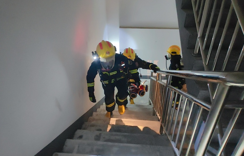 体能是专职消防员的“生命线”,更是完成救援任务的前提。根据队员年龄、体能基础差异,制定个性化训练方案,划分基础组、强化组,并结合高温天气科学合理调整训练计划,分别开展3000米跑、单杠引体向上等基础训练,以及六米拉梯、两分钟原地着装、无人机横排操作操等专项训练。同时,摒弃单纯的“比速度、拼耐力”模式,将体能训练与救援场景结合,例如模拟“浓烟环境下负重转移伤员”“高层建筑灭火供水线路铺设”等任务,让整支队伍在高强度体能消耗中适应实战节奏,打造“拉得出、扛得住、冲得上”的过硬队伍。