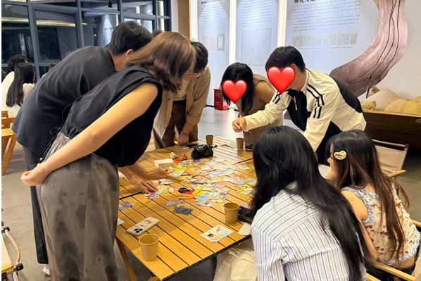 破冰效果逐渐显现,现场氛围也从最初的拘谨转向轻松。工作人员顺着这份自然的交流节奏,为大家提供自由畅谈的空间。喜欢文学的“INFP”与同样热爱阅读的“ISFJ”探讨近期读的书籍,擅长策划的“ESTP”与注重细节的“ISTJ”分享生活中的创意小事,原本陌生的男女在性格共鸣与兴趣碰撞中逐渐放松,现场笑声、交谈声与运河的流水声交织,温暖而热烈的氛围为活动尾声的情感表达做好了铺垫。