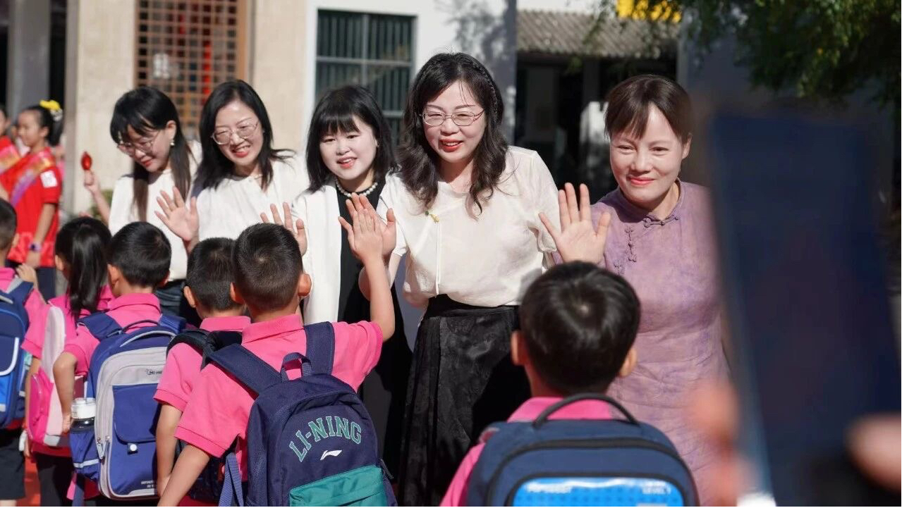 “欢迎来到宾虹小学!”“你们好!”金华市宾虹小学教育集团党总支书记、总校长余艳双携校级班子早早地在校门口迎接孩子们,用亲切的笑脸和话语欢迎家长和孩子们的到来。