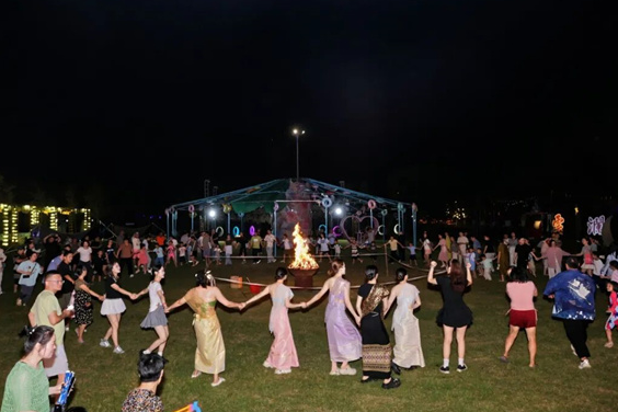 情侣携手闯关时的搀扶、朋友组队时的打闹,让水花溅起满是欢乐;夜幕降临,篝火点燃,大家围火起舞,还是跟着节奏摆动,火光映着笑脸,尖叫声与欢笑声交织,成为夏夜最热闹的浪漫记忆。