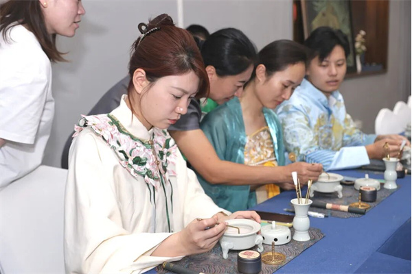 8月31日下午,云上文化客厅三楼的新娘小课堂,以 “沉浸式古礼体验” 成为艺术周 “仪式感亮点”。跟着老师学习 “香篆打制”,点燃后让香气萦绕指尖,在细节中读懂非遗的郑重与浪漫。
