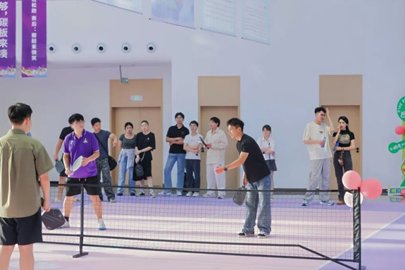 文创中心一楼大厅的情缘匹克球,凭借“轻运动 + 高互动”成为七夕“活力亮点”。双人搭档间的眼神交流与动作配合,让人们不知不觉拉近了距离,运动也能很浪漫。