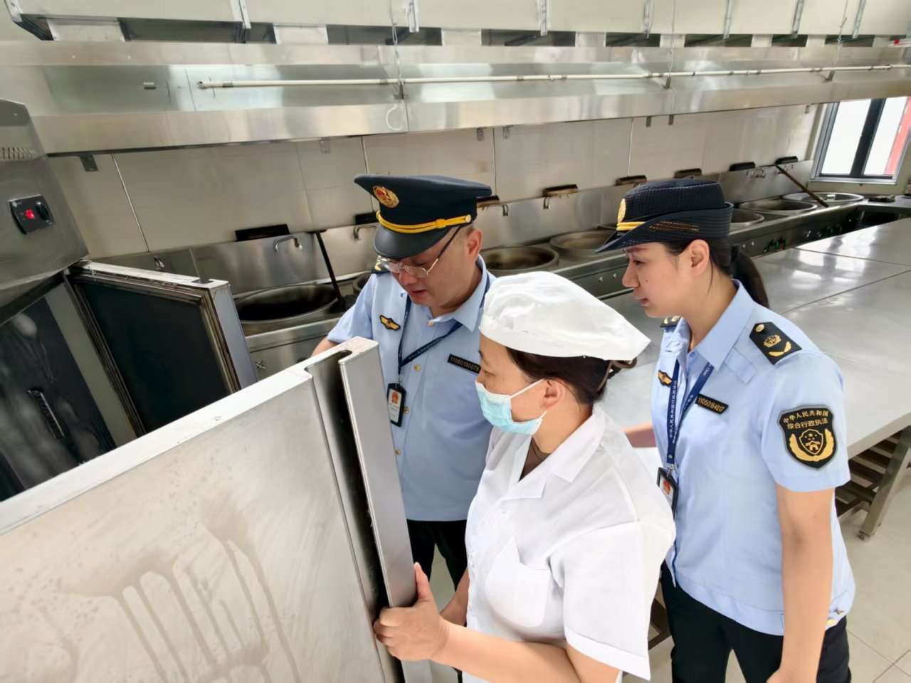 执法队员深入学校食堂,重点对食品原料采购储存、加工制作流程、餐具清洗消毒、从业人员健康证明及环境卫生等各环节进行了细致排查,严防食品安全隐患。同时,执法队员对消防设施器材是否完好有效、疏散通道和安全出口是否畅通等消防安全情况进行了全面检查,确保意外情况发生时应急机制有效运行。