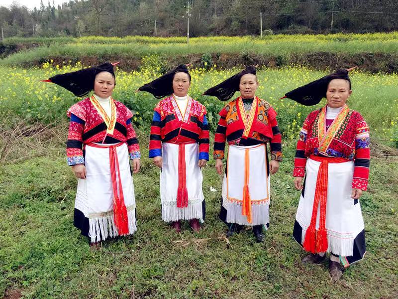 两千多年前,夜郎国作为西南夷君长以什数最大的国家,但还没有自己成型的文字,而夜郎国在西汉成帝和平年间(公元前27年)就消失了,当时中国还没有发明纸。纸是在东汉公元88年才发明,此时夜郎国已消失了115年。当时的夜郎国在一没有自己成型的文字,二没有纸的情况下,他们为传承自己的历史文化,一是靠口口相传;二是镌刻在山上的石头上;三是把历史文化绣在服饰、裙饰穿在身上;四是在民俗活动事象上;这就是古人的智慧。