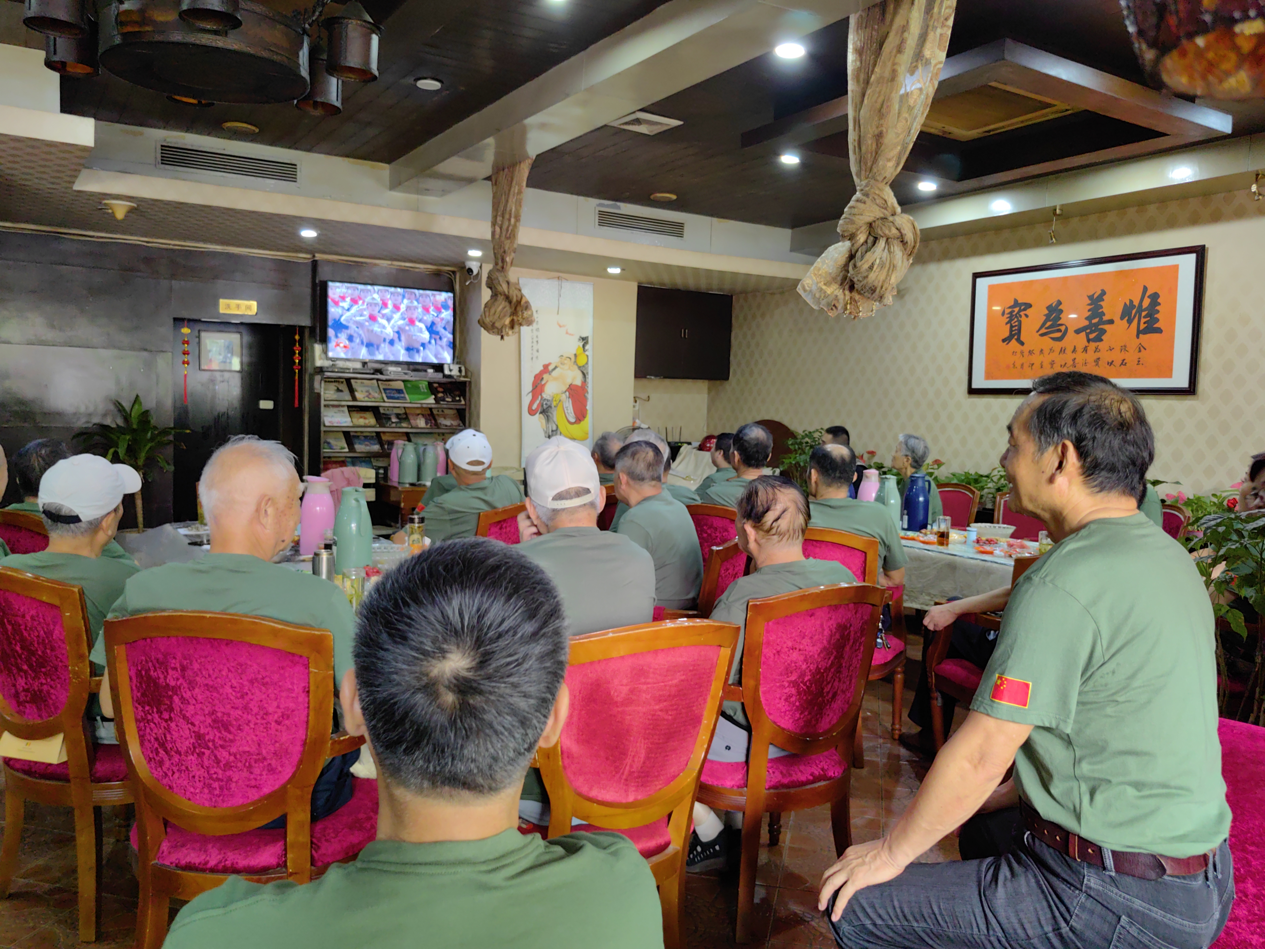 阅兵式开始,大家聚精会神、满怀热情地观看着阅兵式中的每一个环节,气势辉宏的场面,威武整齐的方阵,强烈震撼着大家的心灵。在整个观看过程中,老兵们仿佛亲临现场,感受铿锵步伐、雄壮军乐、飒爽英姿所带来的民族自豪与历史回响!这一刻,我们不仅是观众,更是历史的见证人。让我们齐聚一堂,用掌声致敬峥嵘岁月,用目光追随强国步伐!