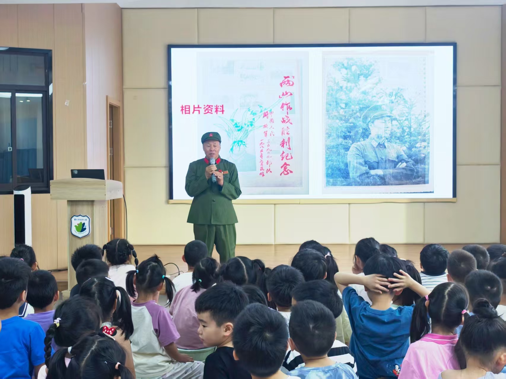 下午,退役军人张海平爷爷走进大班课堂。张爷爷的故事生动有趣,他说当年的军帽沾过晨露,步枪扛过星光,小朋友们听得眼睛亮晶晶的。爷爷还教孩子们如何敬军礼,说这是对过去的致敬。在故事中,孩子们知道了红旗为什么这样红,也悄悄把“勇敢”和“珍惜”记心里,还约好要像老兵爷爷说的那样,好好长大,守护美好的家!