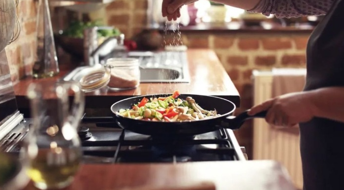 第五步:挑选低盐的烹饪方式。在家做饭尽量多使用清蒸、煮后蘸汁或凉拌的方式,不仅可以降低用盐量,还能减少带盐汤料和食物的接触时间。急火快炒或用空气炸锅、烤箱无油烘烤、微波炉煎煮也可以。