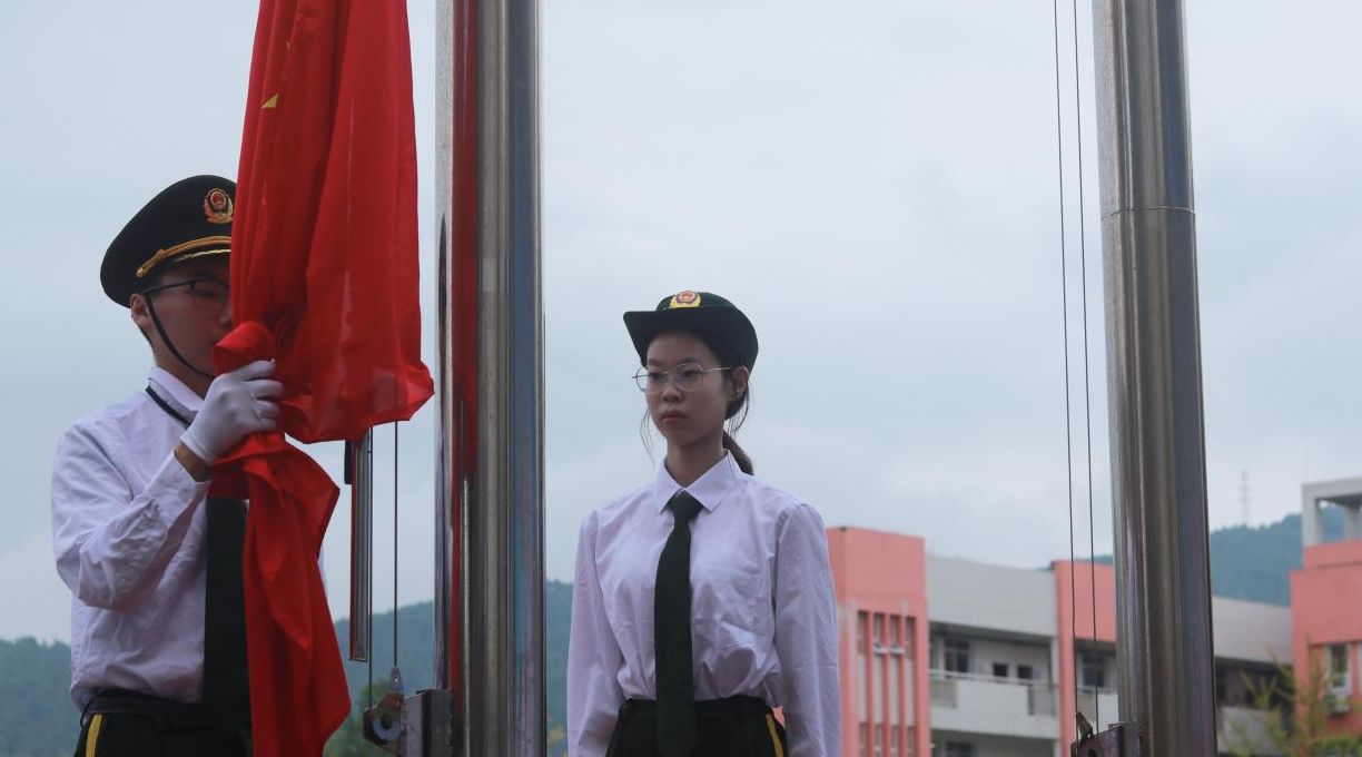 升旗仪式上,全体师生肃立,国歌雄壮奏响,五星红旗冉冉升起,师生们在庄重氛围中铭记初心、坚定使命。