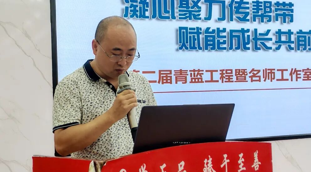 何华艳副校长在讲话中充分肯定了教科室工作,深刻阐述了"青蓝工程"和“名师工作室”的战略意义,礼赞了名教师的教育家精神,细数了新教师的工作亮点。她说“青蓝工程”是一座桥,渡的是新教师的困惑与迷茫;“名师工作室”是一团火,燃的是教育的激情与梦想。她对新老教师提出殷切期望,为学校教师队伍建设和名师工作室指明了方向。