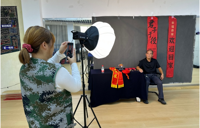 值得一提的是,本次活动特别增设的暖心环节成为一道亮丽的风景线——新城街道老兵摄影志愿服务队的志愿者、来自嘉兴市vivo公司老兵摄影队的项莉莉老师也来到现场。作为vivo全国十佳摄影师获得者,她运用专业的技术和充满温情的视角,专注地为每一位老兵拍摄肖像,用心捕捉他们坚毅的眼神和洋溢的笑容。这项独具匠心的服务深受老兵们的喜爱,不少老人认真整理衣帽、佩戴勋章,在镜头前展现出自豪而光彩的模样,让这一刻的幸福与尊崇在光影中永恒定格。