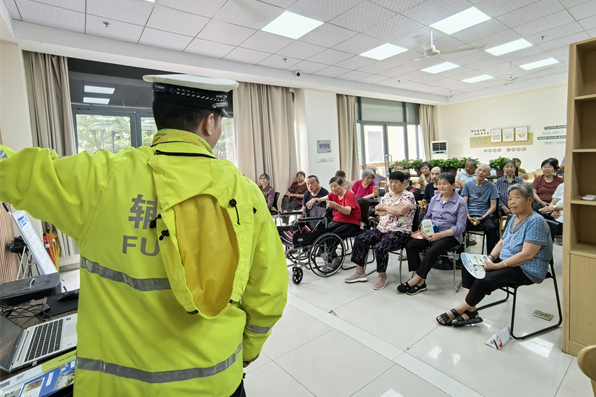 精准宣传,筑牢温情防线。针对“一老一小”重点人群,精准化开展交通安全知识宣传普及。邀请嘉兴交警二大队长水中队在永丰养老驿站等宣传阵地,通过举办讲座、播放宣传片、发放宣传手册等方式,向“银发族”讲解安全出行注意事项,提高老年人自我保护意识。此外依托新时代文明实践站以暑期社会实践活动为契机,向青少年普及交通规则,培养自觉遵守交通法规的良好习惯,让安全的种子在“幼苗”心中茁壮成长。