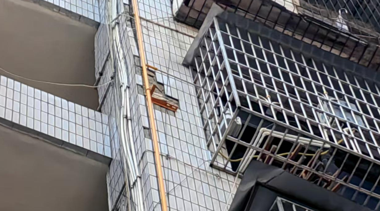 社区文化网(姚玉兰)“我们那个外墙长了好大个‘包’”,2025年9月15日,家住射洪市杨家三巷34号房产开发公司宿舍小区的范先生焦急地反映。原来,该小区一单元5楼6楼休息平台外的墙上鼓了一个大包。这栋建于1994年,有着三十多年历史的老楼,外墙鼓出的包已有开裂、松动迹象,岌岌可危,严重威胁着小区居民的安全。