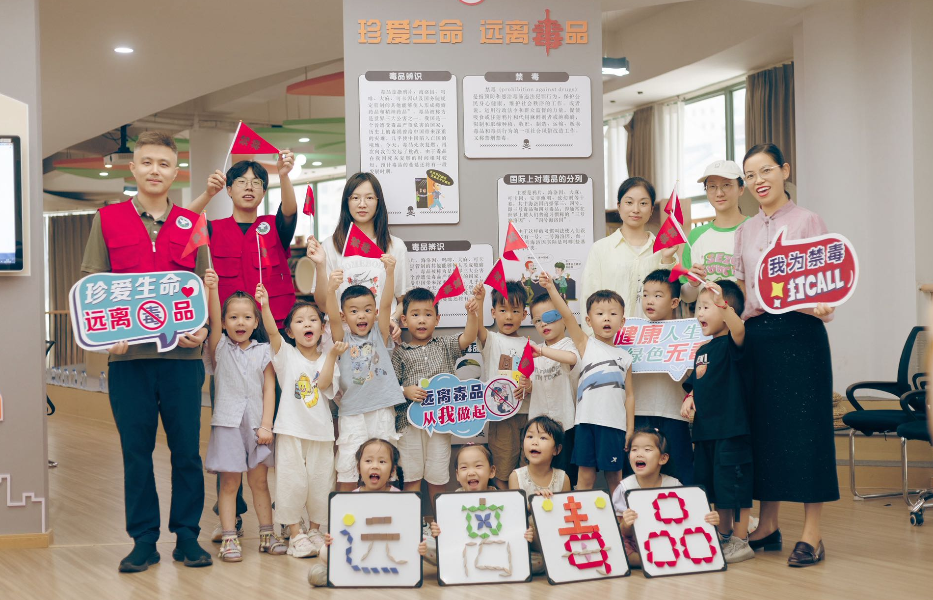 家长们也在一旁参与,有的和孩子一起对比积木与宣传册上的毒品图片,有的趁机聊起“拒绝陌生人零食”的安全话题。当孩子们亲手拼出“远离毒品”的字样积木时,脸上多了几分认真,这种由解放街道凌塘社区与街道禁毒办精心设计的互动形式,比说教更生动,也让“远离毒品”的种子悄悄种进了心里。