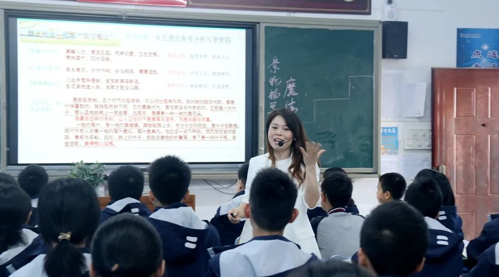 培训现场,多位教师呈现了精彩纷呈的教学与班会实例。郭小莉老师通过情境创设、群文共读和五感观察训练,引导学生探秘写景写作。