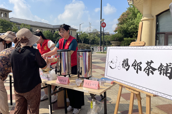 在“槜邻茶铺”前,社区工作人员正端上一杯杯清润的菊花茶,递给往来的邻里,“天气热,大家喝杯茶歇歇脚!”声声邀请中,这座以茶为媒的“连心桥”,不仅消解了彼此的生疏,更让居民们在袅袅茶香中,品出了槜李社区特有的融洽与温度。