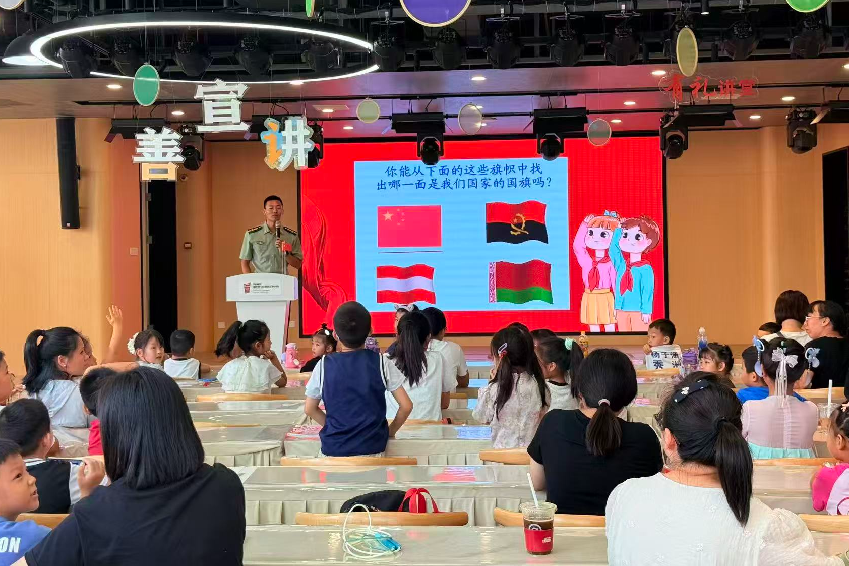 宣讲环节,翟军伟以“国旗的故事”为主线,从国旗的设计由来、象征意义到升挂规范,为现场青少年带来一堂生动的爱国主义教育课。通过珍贵的历史照片与详实资料,他细致讲述了1949年国旗征集与评选的历程,重点阐释了五星红旗中红色象征革命、五颗星代表中国共产党领导下各族人民大团结的深刻含义,帮助孩子们理解国旗背后所承载的奋斗历史与精神价值。