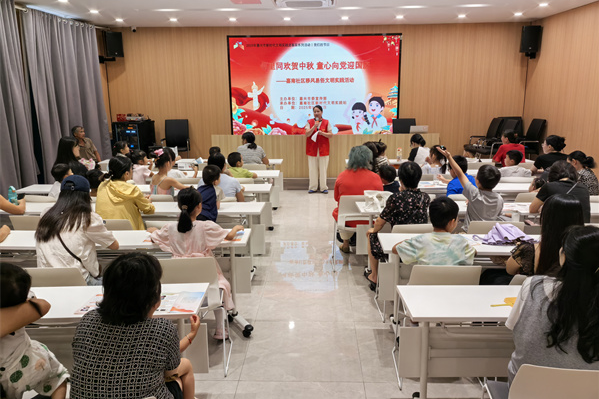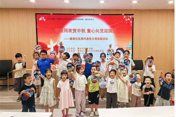 为大力弘扬中华民族的传统文化,丰富居民群众的精神文化生活,深化民族团结教育,铸牢中华民族共同体意识,9月 27日上午,嘉兴市经开区长水街道嘉南社区新时代文明实践站、妇联、人口家庭协会开展了一场以“邻里同欢贺中秋,童心向党迎国庆”为主题的亲子活动,约 30 组亲子家庭齐聚一堂,在欢声笑语中提前感受中秋的团圆温情与国庆的热烈氛围。