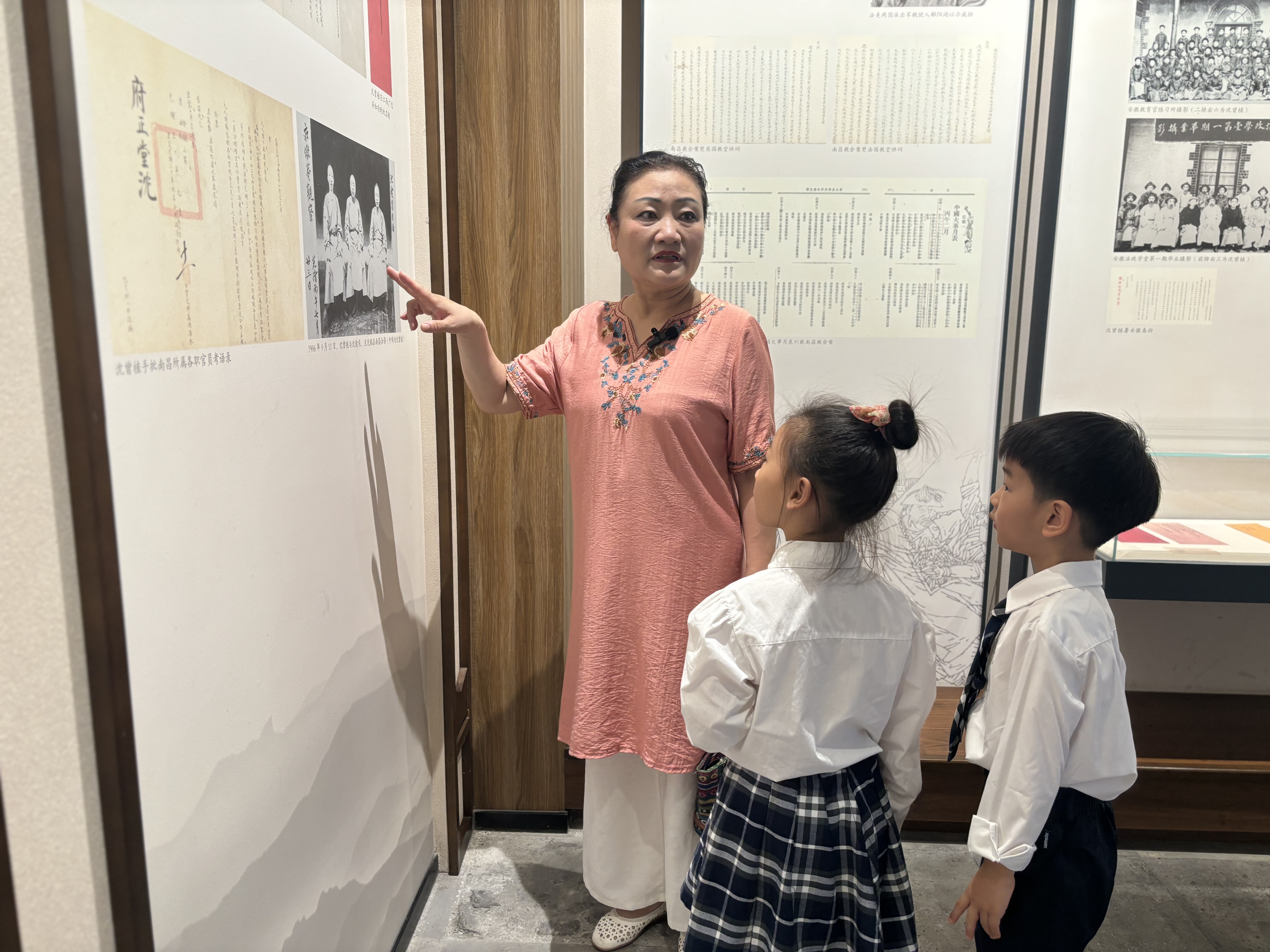 随后,大家前往沈曾植故居。在故居门口,奶奶讲了故居的历史背景 —— 位于姚家埭 21 号的沈曾植故居是清代建筑,属省级文物保护单位,保留着江南民居风格。走进展示厅,孩子们看着沈曾植的手稿、字画,听奶奶讲述他 “博古通今、学贯中西” 的故事,了解到这位嘉兴大儒的学问与情怀。有孩子天真提问 “沈先生是不是也爱吃肉月饼”,逗得奶奶会心一笑。