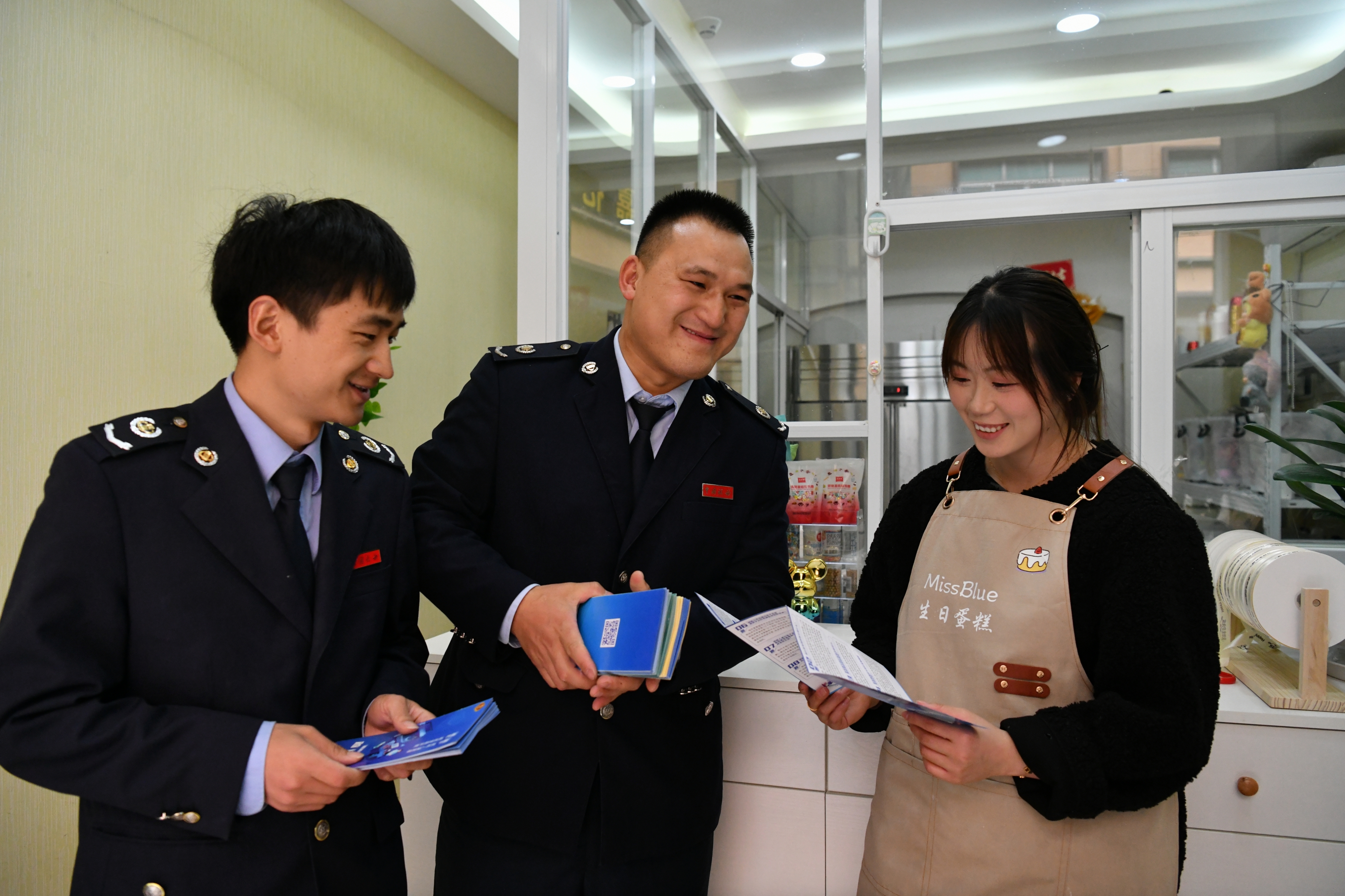 宣传活动期间税务人员以“入户走访”的方式向个体工商户宣传税费优惠政策(摄影:张瑜显)