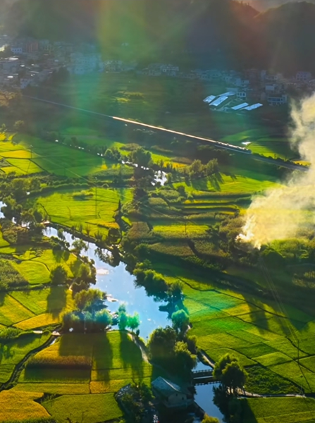 踏上旧州古镇的青石板路,明清风貌的屋舍间飘来新米清香,勾起人们对田园生活的向往。2.8万亩水稻进入收获期,80%以上通过机械收割,稻草香与古镇的烟火气交融弥漫,尽显古朴与现代的碰撞之美。