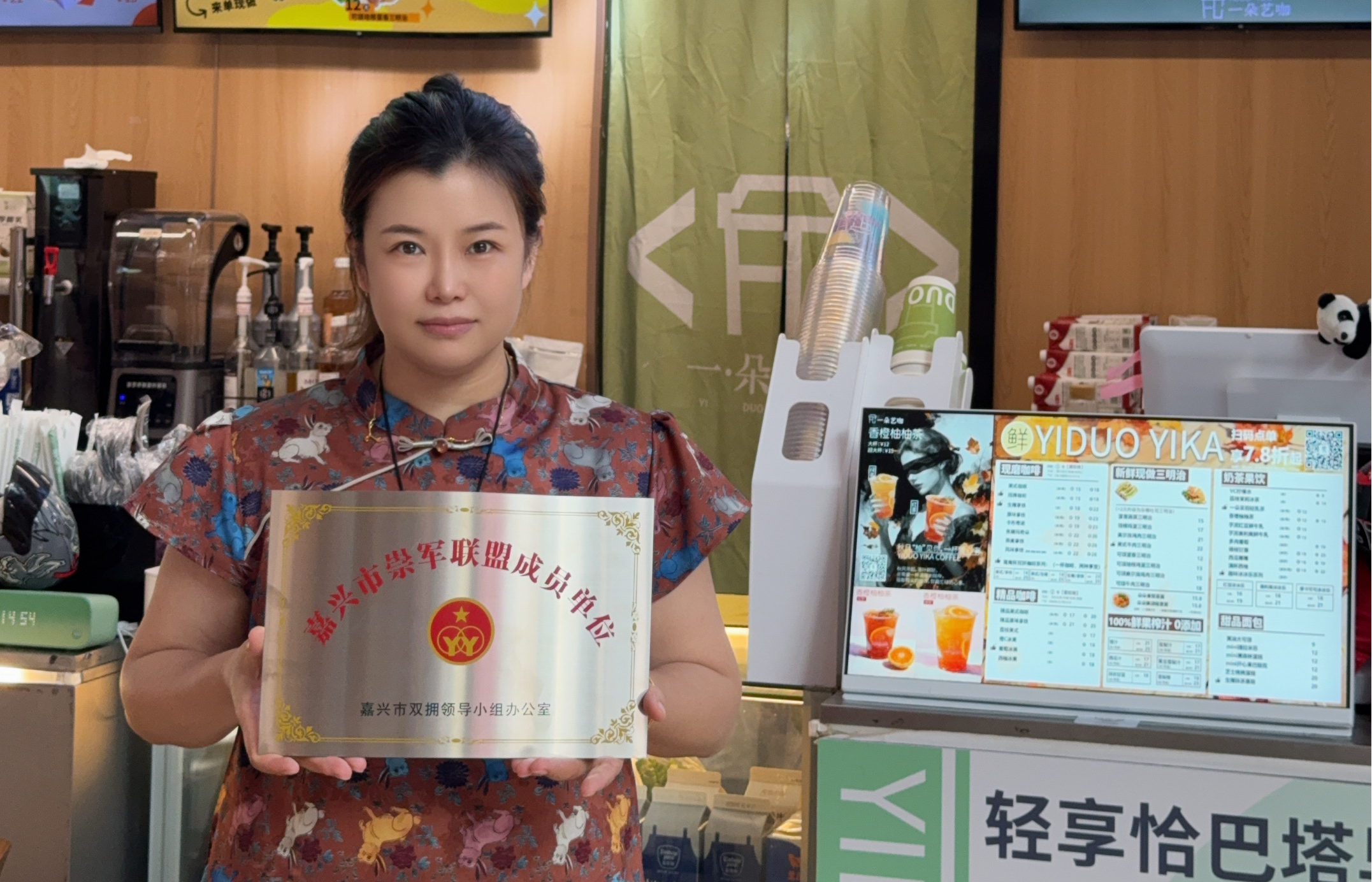 10月9日,嘉兴市秀洲区新城街道与中山社区退役军人服务站为浙江一朵餐饮管理有限公司秀洲商会大厦店迎授予“嘉兴市崇军联盟成员单位”。自此,这家以现磨咖啡、手工轻食为特色的社区人气店铺,正式加入秀洲区崇军联盟,将以全年“七八折”的实在优惠,在烟火日常中向退役军人及其他优抚对象传递尊崇与关怀。
