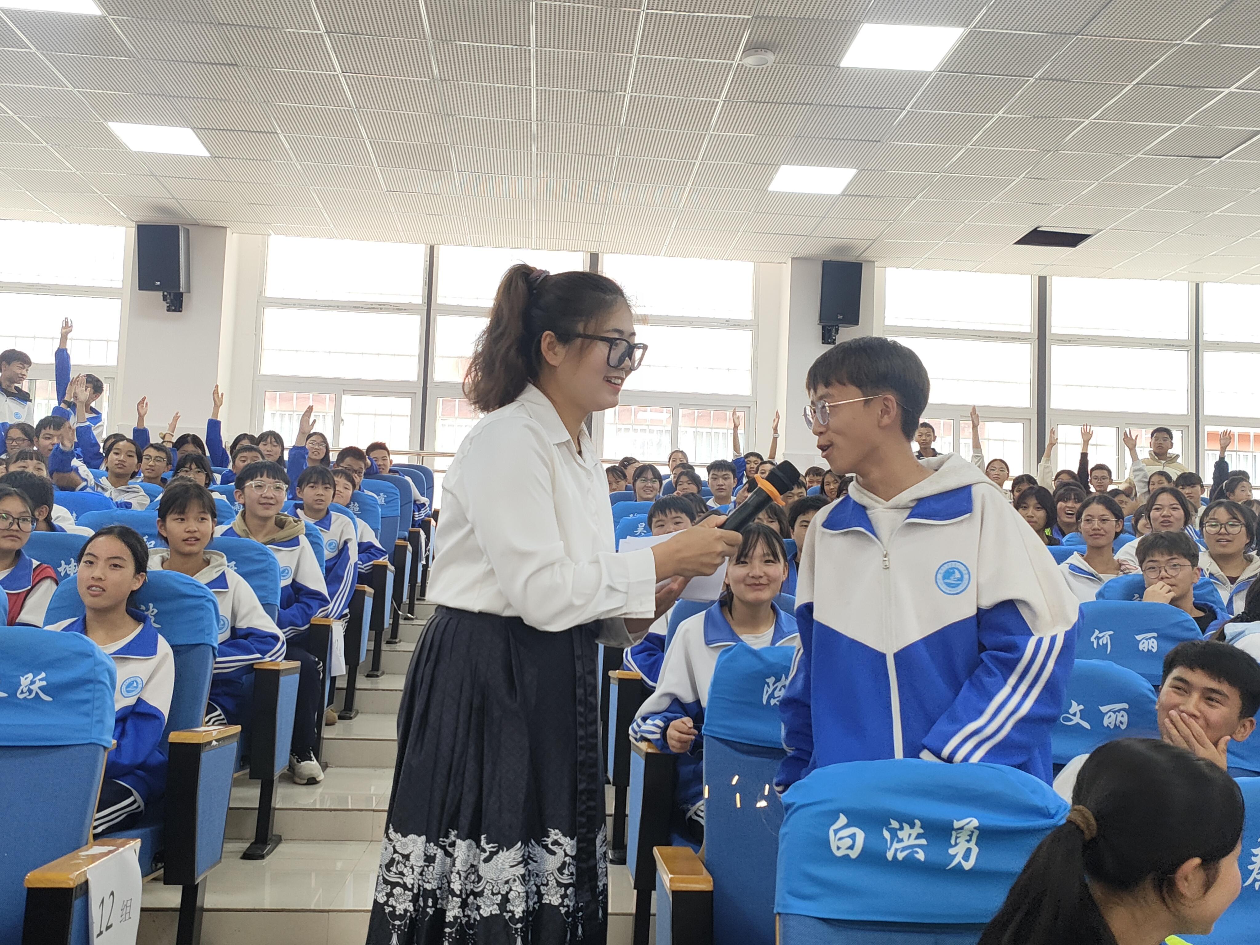 “关于中秋的诗词接龙”等问题抛出后,师生踊跃举手、积极应答,在知识碰撞中深化对爱国情怀与民族团结的认知,一场跨越时空的文化对话就此铺展,既叩击出师生心中对祖国的无限自豪,也漾起对团圆的深深眷恋。