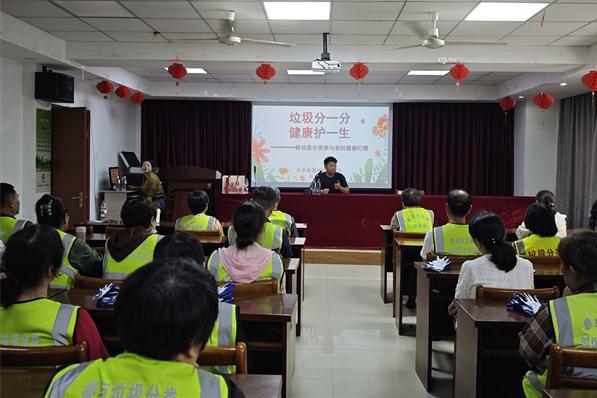 垃圾分类劝导员是社区环保工作的核心力量,他们每日坚守岗位,耐心指导居民进行垃圾分类,为社区环境的整洁与可持续发展默默奉献,却长期面临多重健康隐患——可能接触垃圾中的有害物质、病原体及尖锐物品,存在化学暴露、生物感染与物理伤害等风险。此次讲座精准聚焦这一群体需求,以“以人为本”为核心理念,旨在通过健康知识普及增强其自我保健意识。