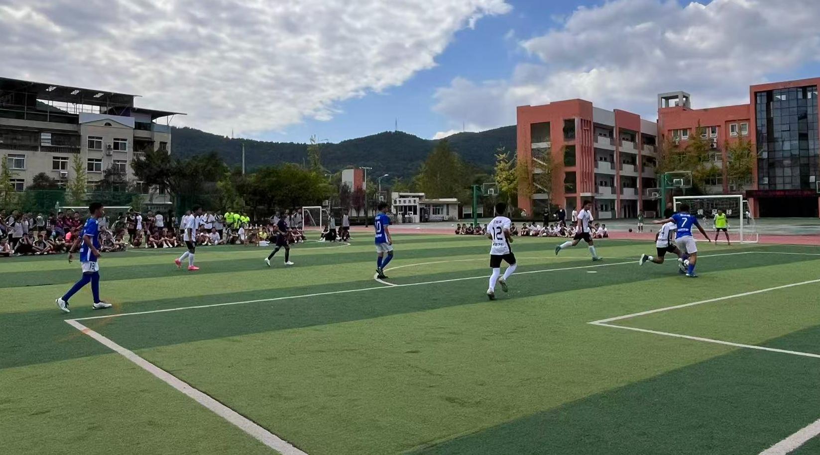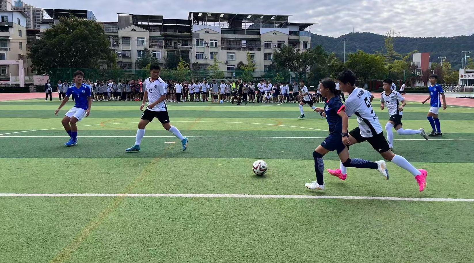 “好球!”随着解说同学的大喊,白队队员接队友传球后一记抽射,足球直入网窝。场边的啦啦队欢呼鼓掌,连路过的老师,都忍不住拍掌。十五分钟的表演赛里,抢断、传球、射门的节奏紧凑得让人目不转睛,而当终场哨声响起时,球员们笑着拥抱在一起,汗水浸湿的球衣,成了此刻最耀眼的勋章。