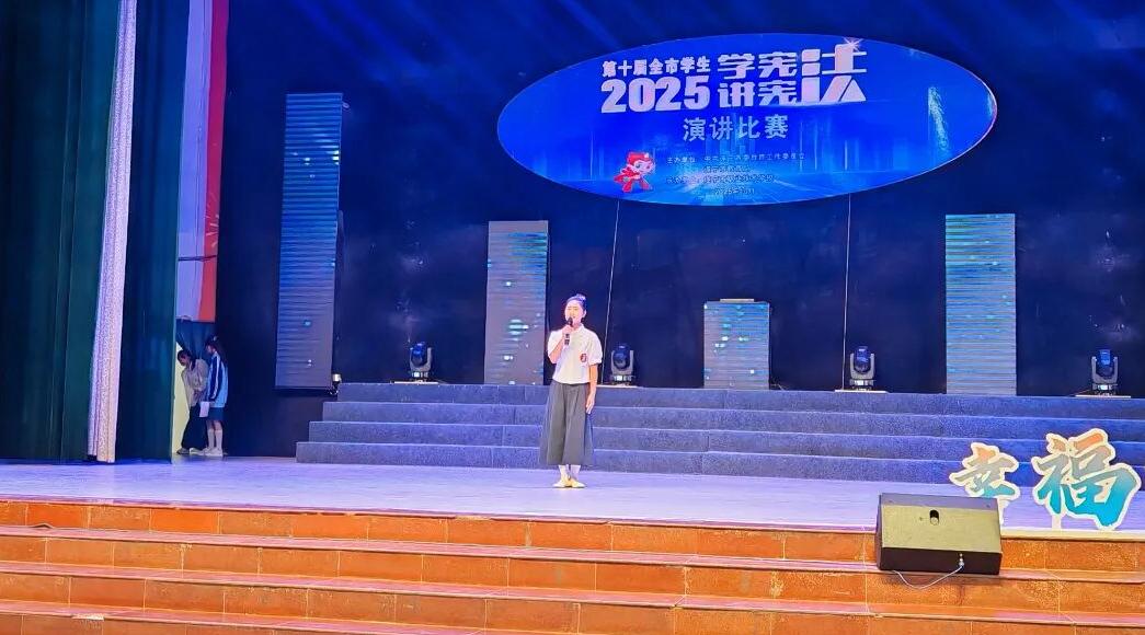 白欣之同学在比赛中,以深刻的宪法认知、流畅的语言表达和饱满的情感诠释,充分展现了新时代中学生对宪法精神的理解与传承,为射洪市城西学校赢得了崇高荣誉。