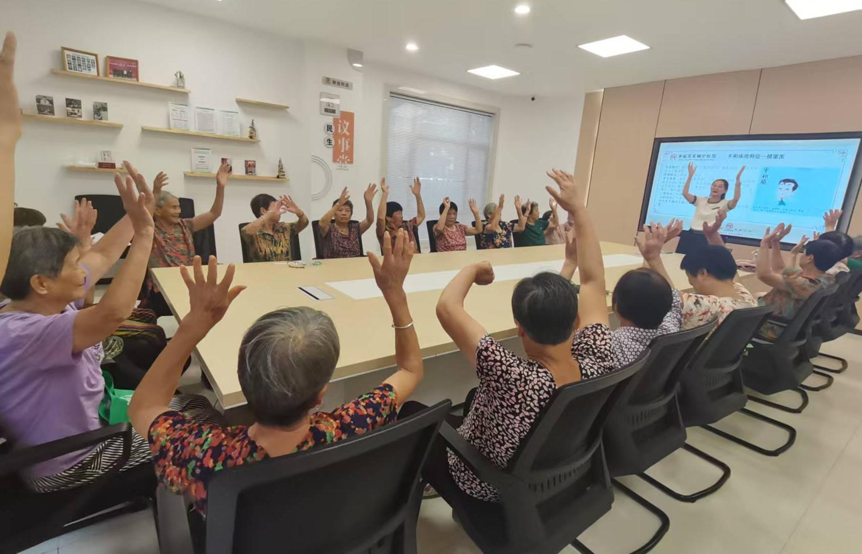 讲座结束后,“手指操互动”环节热闹开启。工作人员带领老人们逐节学习“开合运动”“弹指操”“绕环运动”等6个动作,每个动作配合“一二三四”的节拍口令,确保大家跟上节奏。过程中,志愿者和工作人员协助老人调整手势,纠正发力方式,不少老人表示“手指动一动,感觉肩膀都轻松了”“回家要教老伴一起练”。