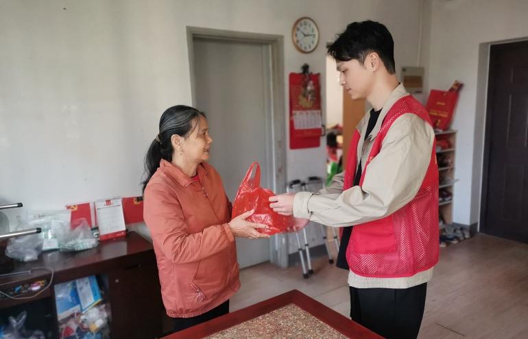 表演结束后,志愿者们分成多组,带着重阳糕与节日问候,上门慰问高龄老人、残疾及困难家庭。每到一户,大家都与居民亲切交谈,详细询问他们的身体状况与生活需求,让他们切实感受到“爱在身边”的温暖。