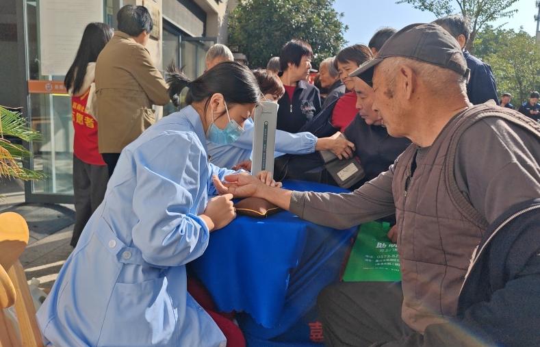 健康关怀是此次活动的重中之重。现场邀请了牙博士口腔、惠耳听力、朝聚眼科、德元升中医、凯宜医院等多家爱心义诊单位,组建专业医疗服务团队,为老年人提供全方位、一站式的健康检查服务。在各义诊摊位前,医护人员耐心细致地为老人们测量血压、检测视力、检查口腔与听力,中医专家则通过望闻问切为老人辨证施治,提供个性化养生建议与中药调理方案。针对老年人常见的健康问题,医护人员还现场科普健康防护知识,解答用药疑惑,让老人们在家门口就能享受到优质、便捷的医疗服务。