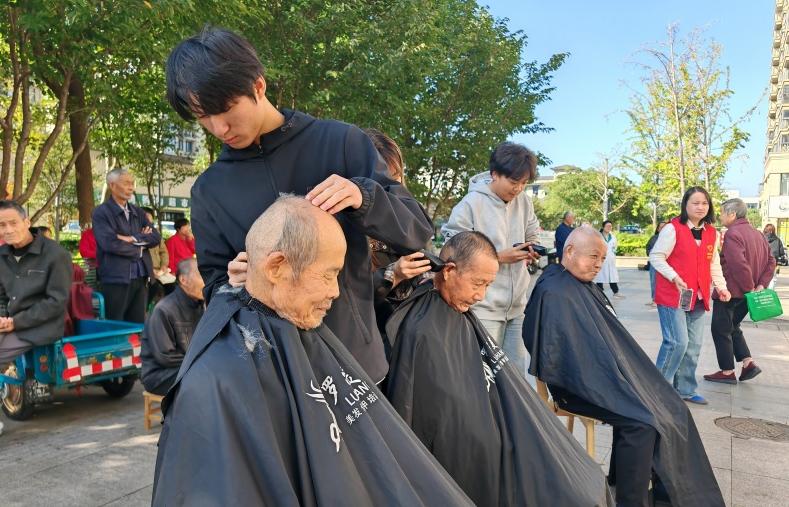 除了健康义诊,还贴心邀请了爱心理发团队为老年人提供免费理发服务。理发师们凭借娴熟的技艺和耐心的态度,根据老人们的需求精心修剪发型,修剪后的老人精神焕发,连连向志愿者们道谢:“社区组织的活动太贴心了,不仅能检查身体,还能免费理发,真是把关爱送到了我们心坎上!”刚理完发的陈阿姨满意地说道。