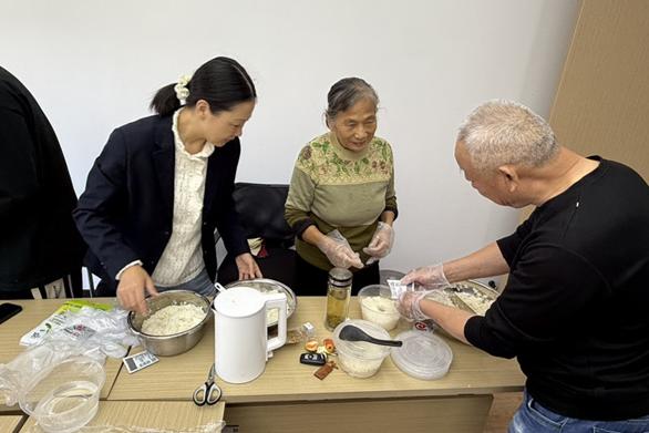 海盐支行将非遗文化与金融服务相结合,开展非遗酿酒主题活动。活动伊始,工作人员以“案例故事+互动问答”的形式,梳理当前常见的金融诈骗手段,反复强调“不轻信、不透露、不转账、多核实”十二字防骗箴言,帮助老年客户掌握实用防骗技巧。随后,在工作人员指导下,老年客户依次体验选米、浸泡、蒸煮、拌曲、发酵等传统米酒酿造工序。现场气氛温馨融洽,既唤起了长者们的美好记忆,感受到了非遗工艺的魅力,也进一步传递了金融服务的温度,丰富了适老文化活动内涵。