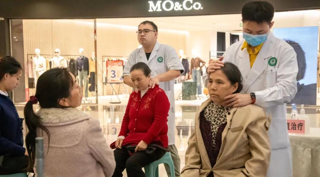在康复治疗区,射洪市中医院康复治疗团队为现场的群众提供推拿按摩、肩颈放松、关节调理、功能评估等服务。现场等候的群众排起了长龙,许多体验者纷纷表示,推拿后身体明显放松,真正感受到中医康复“以手传心、以技养身”的独特魅力。