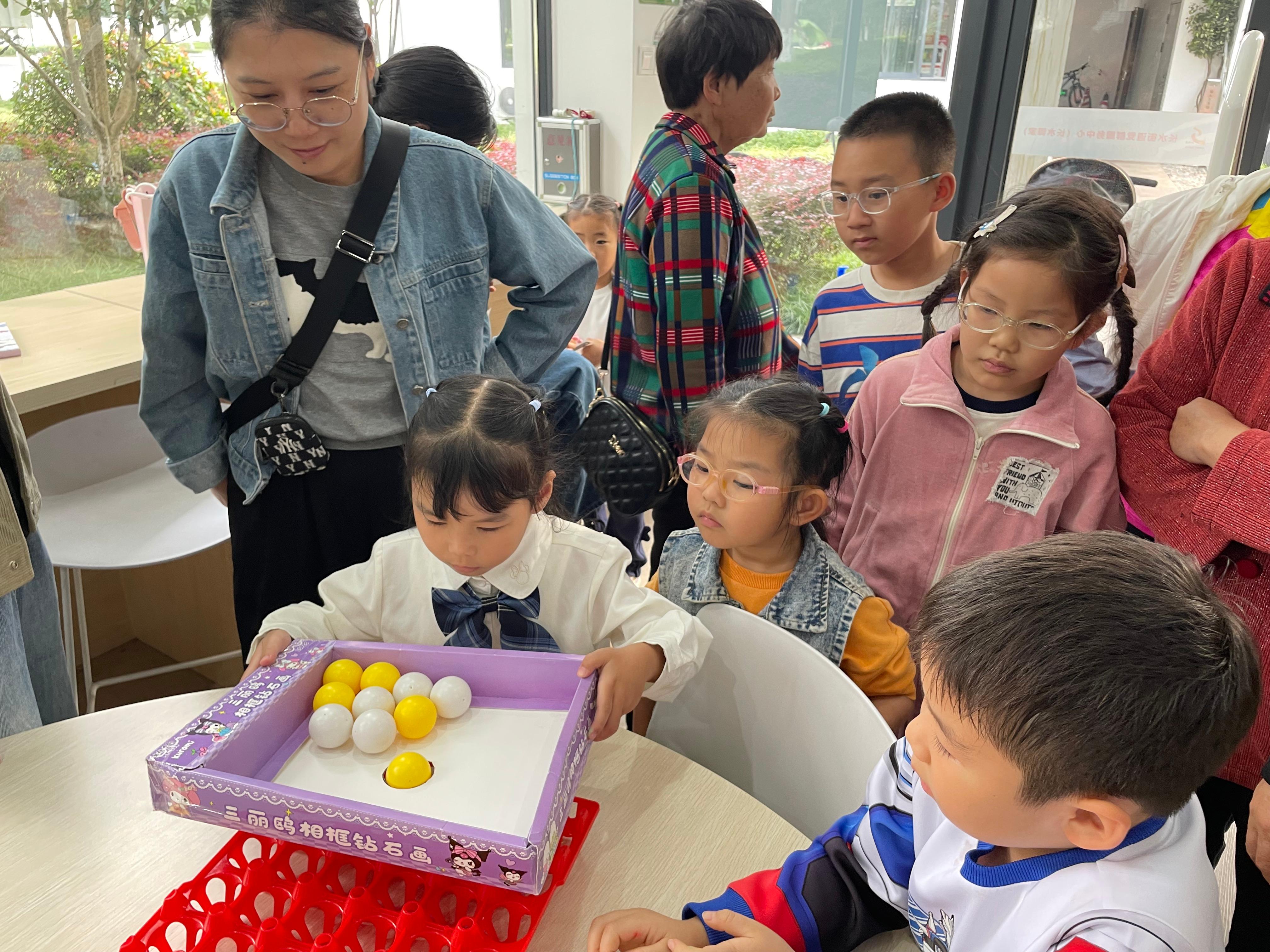 当大家还沉浸在绘画的乐趣中时,“守护龙珠”游戏环节的开启,瞬间将现场气氛推向了高潮。游戏道具是一块带有多个小洞的面板,面板上放置着黄色和白色两“龙珠”。规则简单却充满挑战:各组家庭需通力协作,通过轻轻晃动面板,努力让“黄色龙珠”从中间的小洞里掉落,同时尽可能让“白色龙珠”留在板上,最终留在板上的“白色龙珠”数量越多,成绩越好。各组家庭通力协作,有的家庭分工明确,爸爸负责稳住面板,妈妈和孩子一起观察“龙珠” 的动向,轻声商量着晃动的力度和角度;有的家庭则在一次次尝试中不断调整策略,从最初的“手忙脚乱”到后来的“默契配合”。现场加油声、欢笑声、讨论声交织在一起,孩子们在轻松愉快的竞技中,不仅体验到了游戏的乐趣,更深刻理解了 “团结就是力量” 的道理,感受到了团队合作带来的成就感。