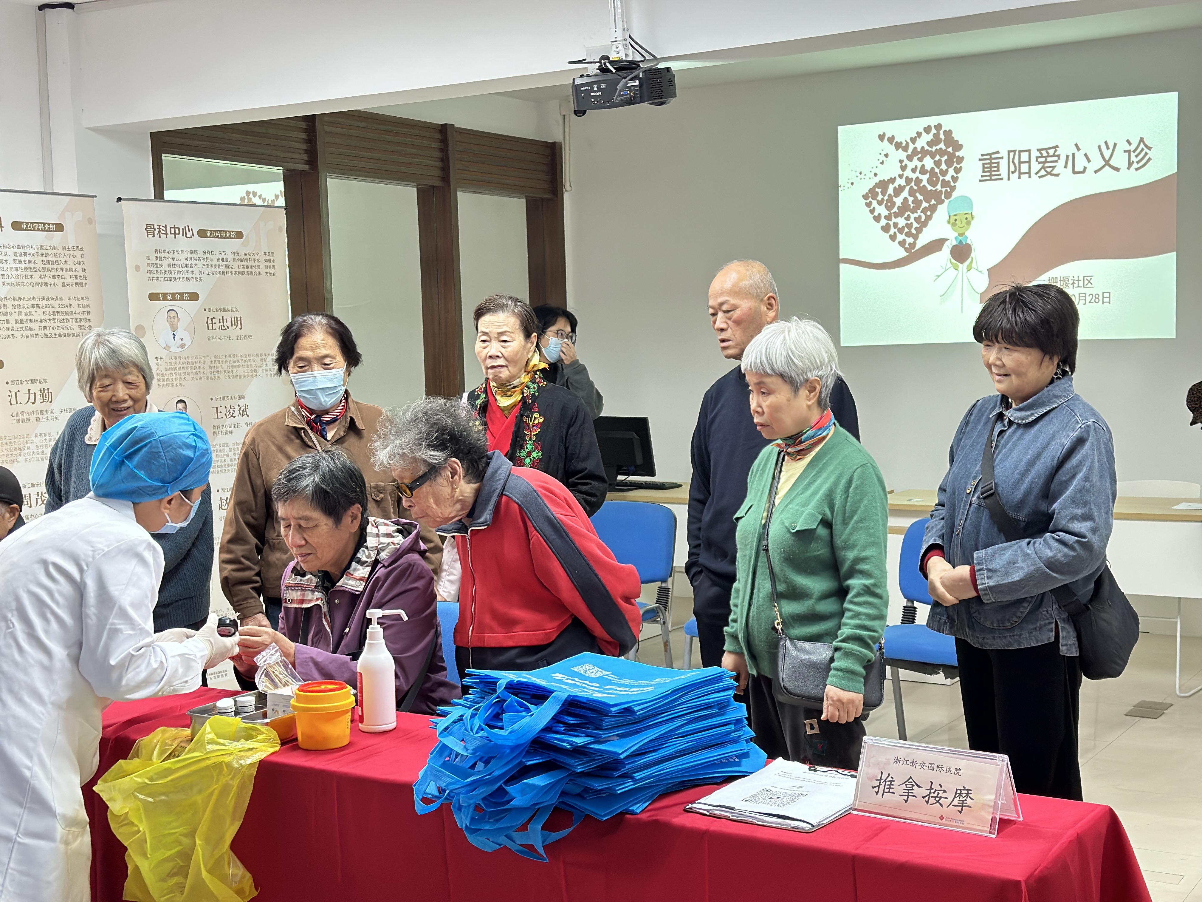 在重阳佳节来临之际,10月28日,嘉兴市南湖区新嘉街道栅堰社区人大代表联络室携手浙江新安国际医院共同举办了"情暖重阳 健康相伴"爱心义诊活动,为社区老年居民送去了一份特别的节日关怀。
