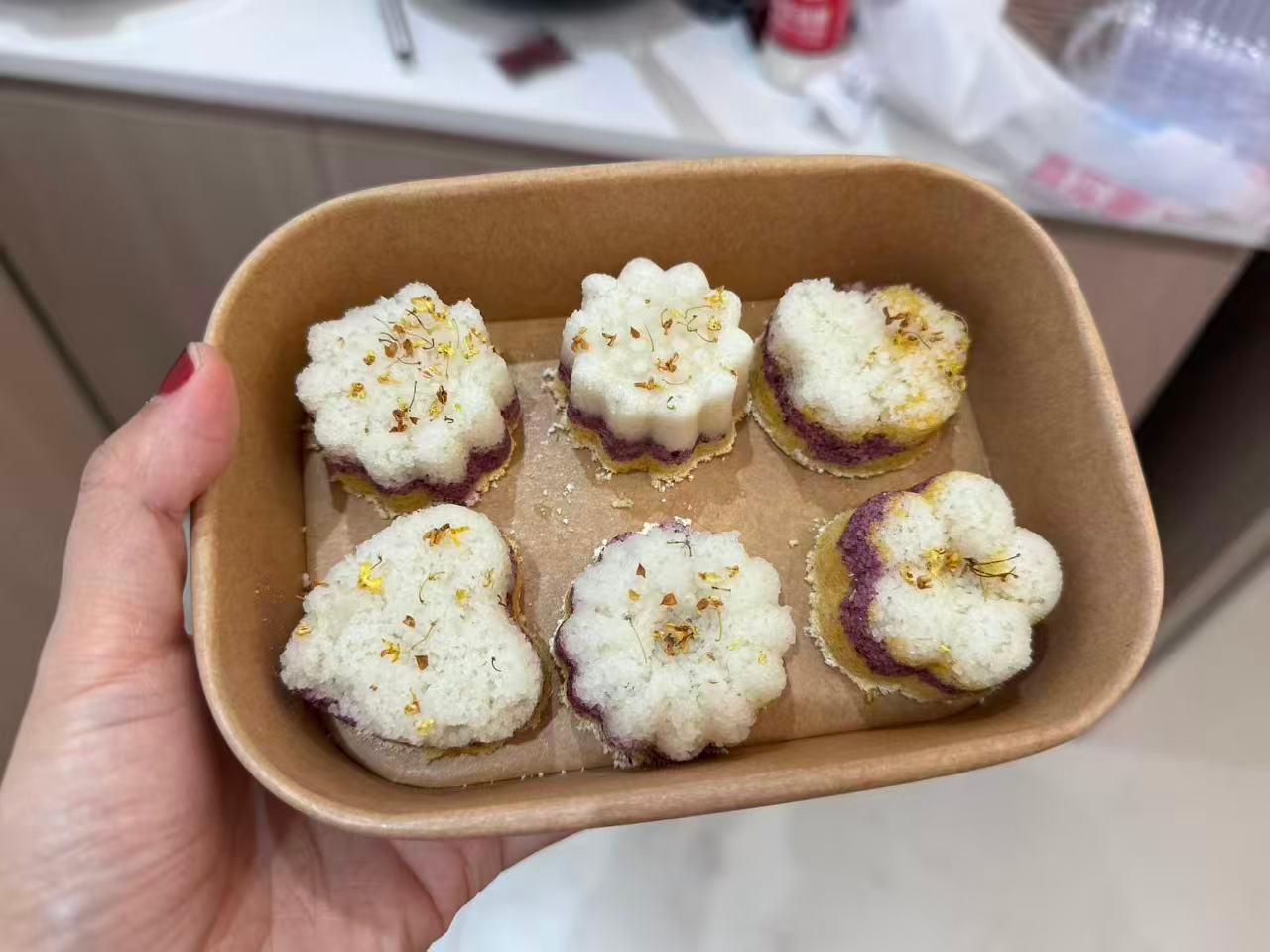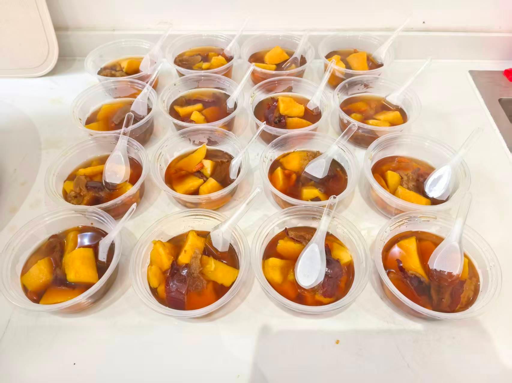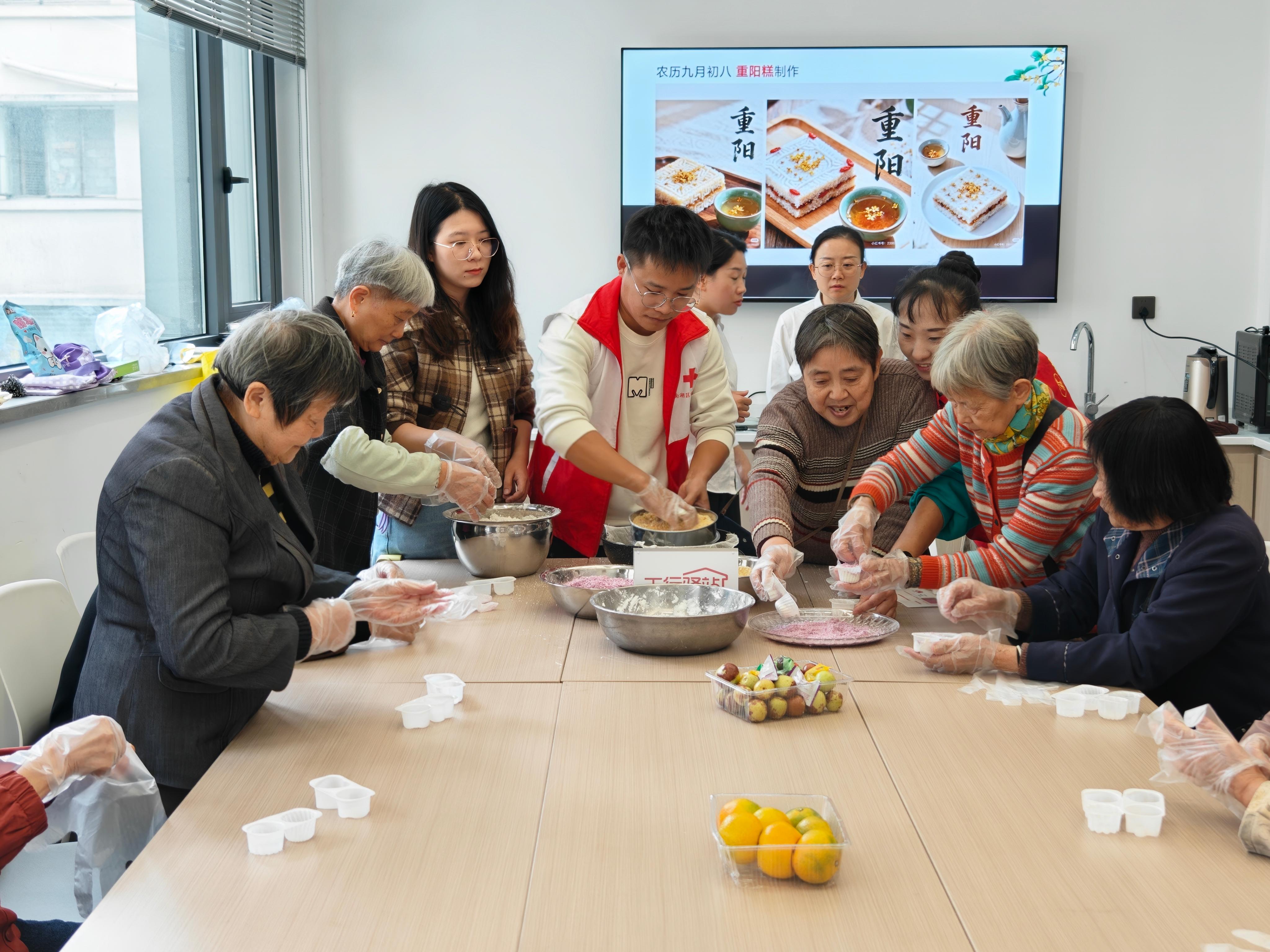 活动现场,银行工作人员与社区老人们齐聚一堂,共同动手制作象征吉祥与健康的重阳糕。在温馨融洽的氛围中,大家分工协作,和面、压模、蒸制……忙得不亦乐乎。一块块香甜软糯的重阳糕不仅承载着对老人们健康长寿的美好祝福,更拉近了社区居民间的距离,现场欢声笑语不断,其乐融融,社区工作人员还为大家准备了红枣番薯甜汤。